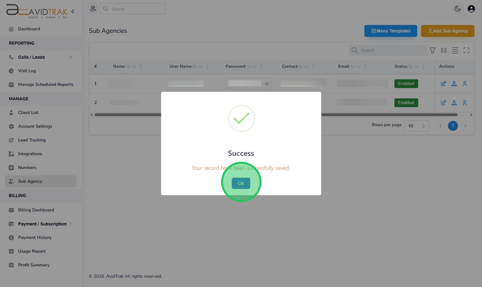 10. This completes the tutorial on How to Enable or Disable a Sub-Agent User Account. If you face any difficulty in implementing these instructions or have questions related to this feature, please do not hesitate to email support@avidtrak.com